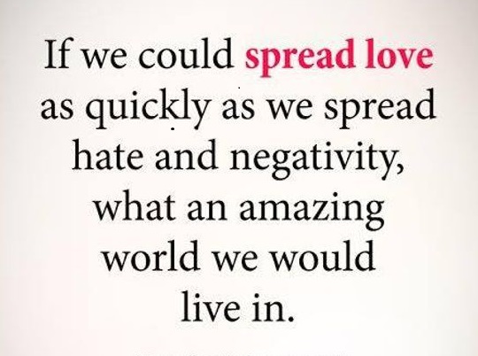 As I scroll through my social media, I see so much hate. I don’t understand it. I can’t comprehend why people feel the need to be so negative toward someone just because they have a different opinion or view on a subject. One of the best things about this country is the ability to have differing opinions, and the capability to express said opinions. If someone believes something different than I do, so be it. Neither one of us is “right”.