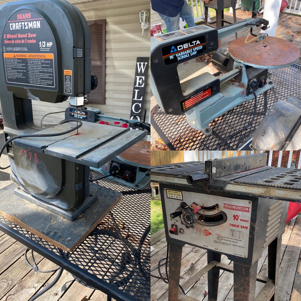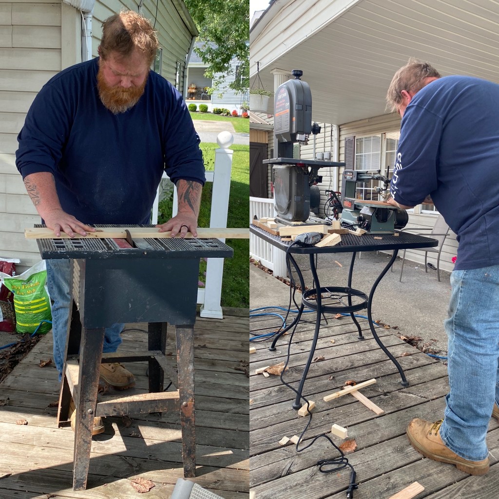 My stepdad gave us three saws the other day that belonged to my grandfather, so we used those to cut our boards, They’re old saws, but they did what we needed them to.