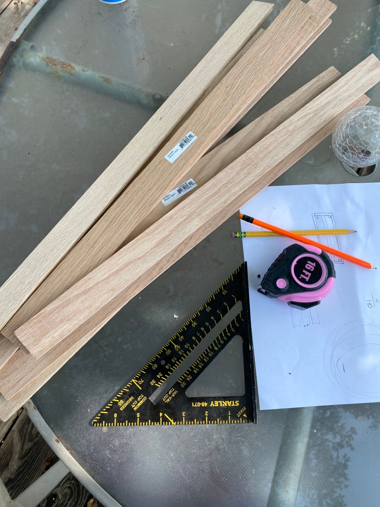 I ended up getting these little oak plank-like trim boards, They were about $1.75 each or so. I grabbed ten of them (just to be safe).