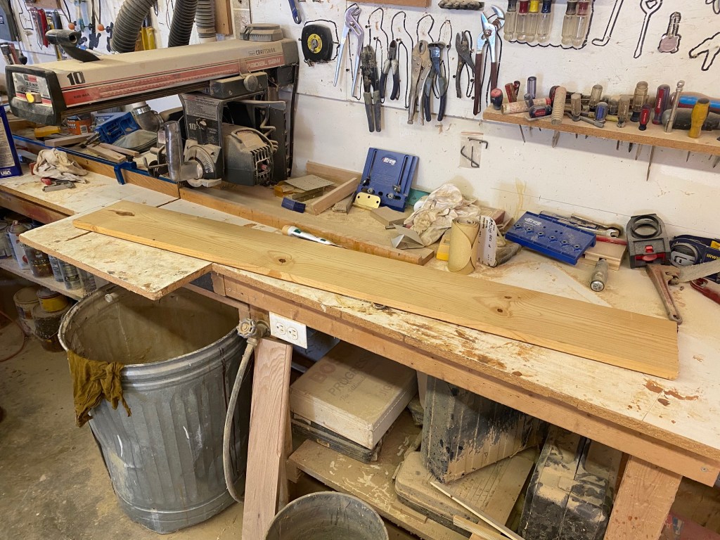 My landlord owns a cabinet shop (which happens to be on our property), so he’s always willing to help us with any cuts we need, so he cut the board for me.