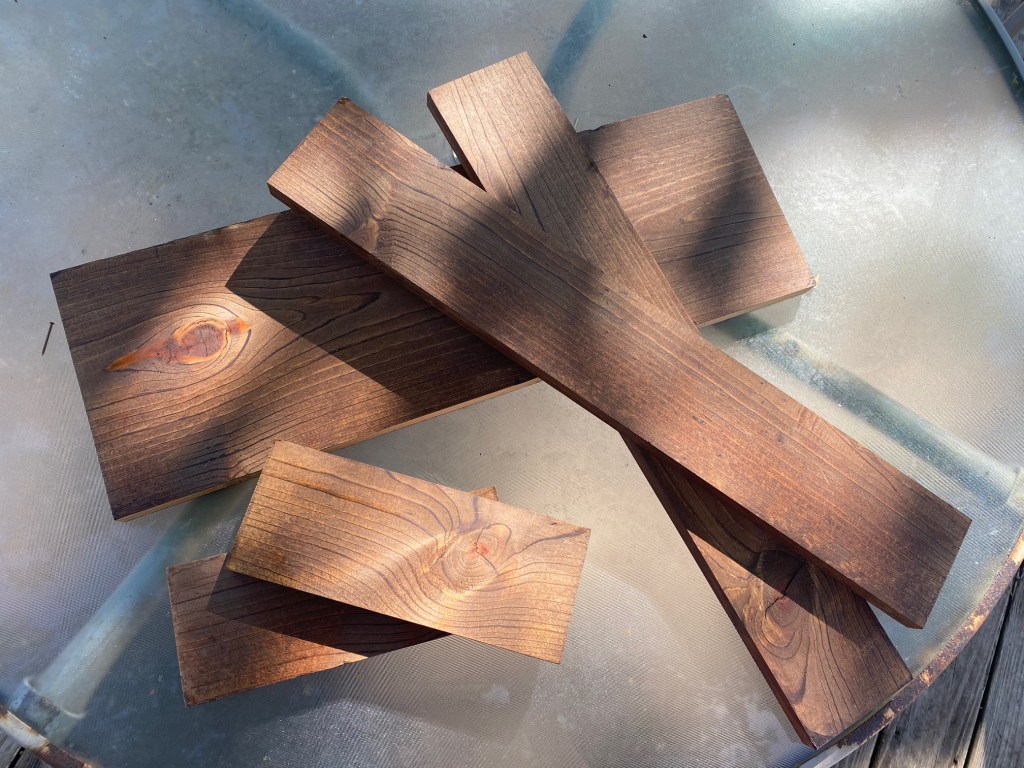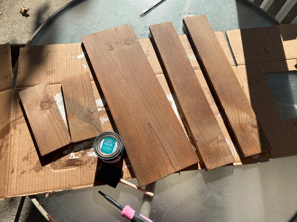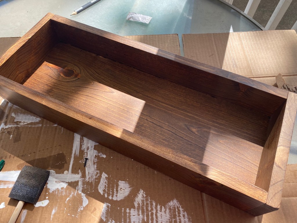 I gave it two layers of stain. It was kind of chilly last night, so the stain was drying really slow. I brought it inside after the sun went down and let it dry overnight.
