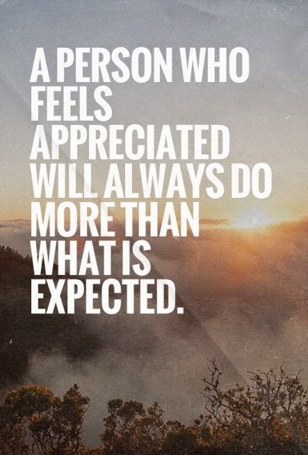 Do you know how truly powerful the sentence, “You are appreciated” is? Having someone tell you that they appreciate you is one of the best feelings in the world. It can literally turn a crap day into a great day!!