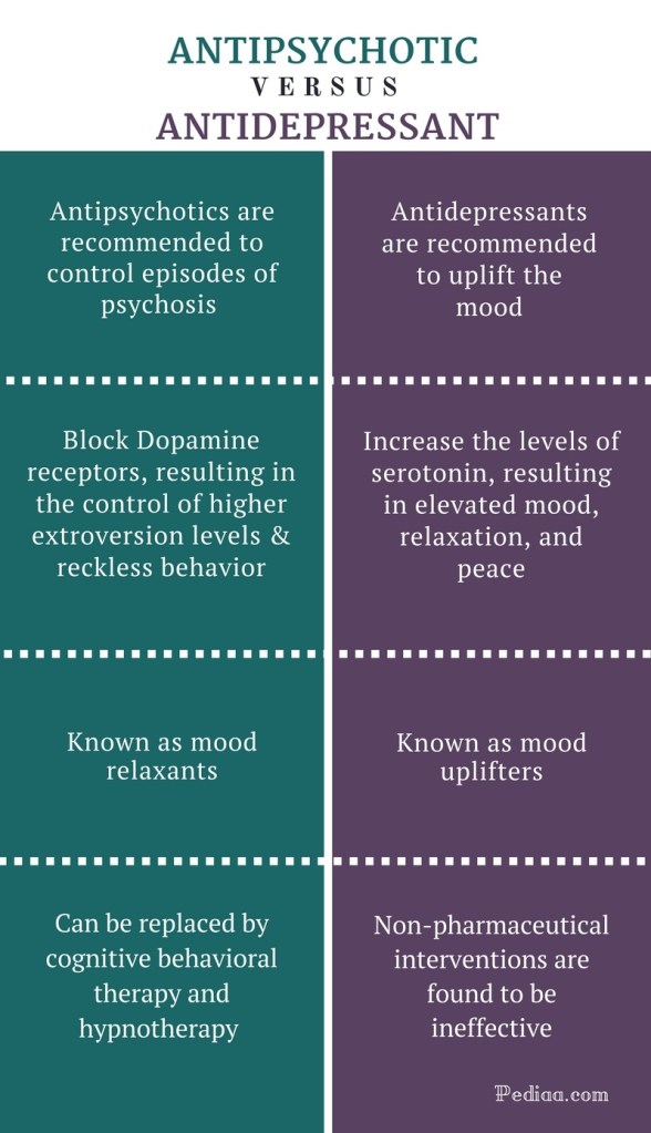 I have disorders from both lists. At my last appointment, the doctor said that she thought I had Bipolar, MDD, OCD, PTSD, and Anxiety. I was wondering if I should be taking both antidepressants and antipsychotics together, but I read that it can disrupt the rhythms of your heart. I am going to trust my doctor and let her do what she thinks is best. I’m going to continue to go to therapy and talk to my therapist about my “problems” and go to the psychiatrist every other month and just try to control my issues the best I can.