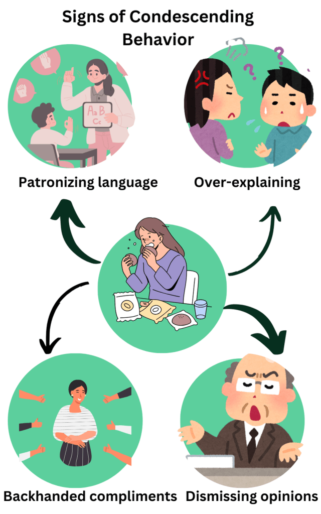 - What it is: Acting superior and talking down to others as if they are less intelligent, capable, or important.